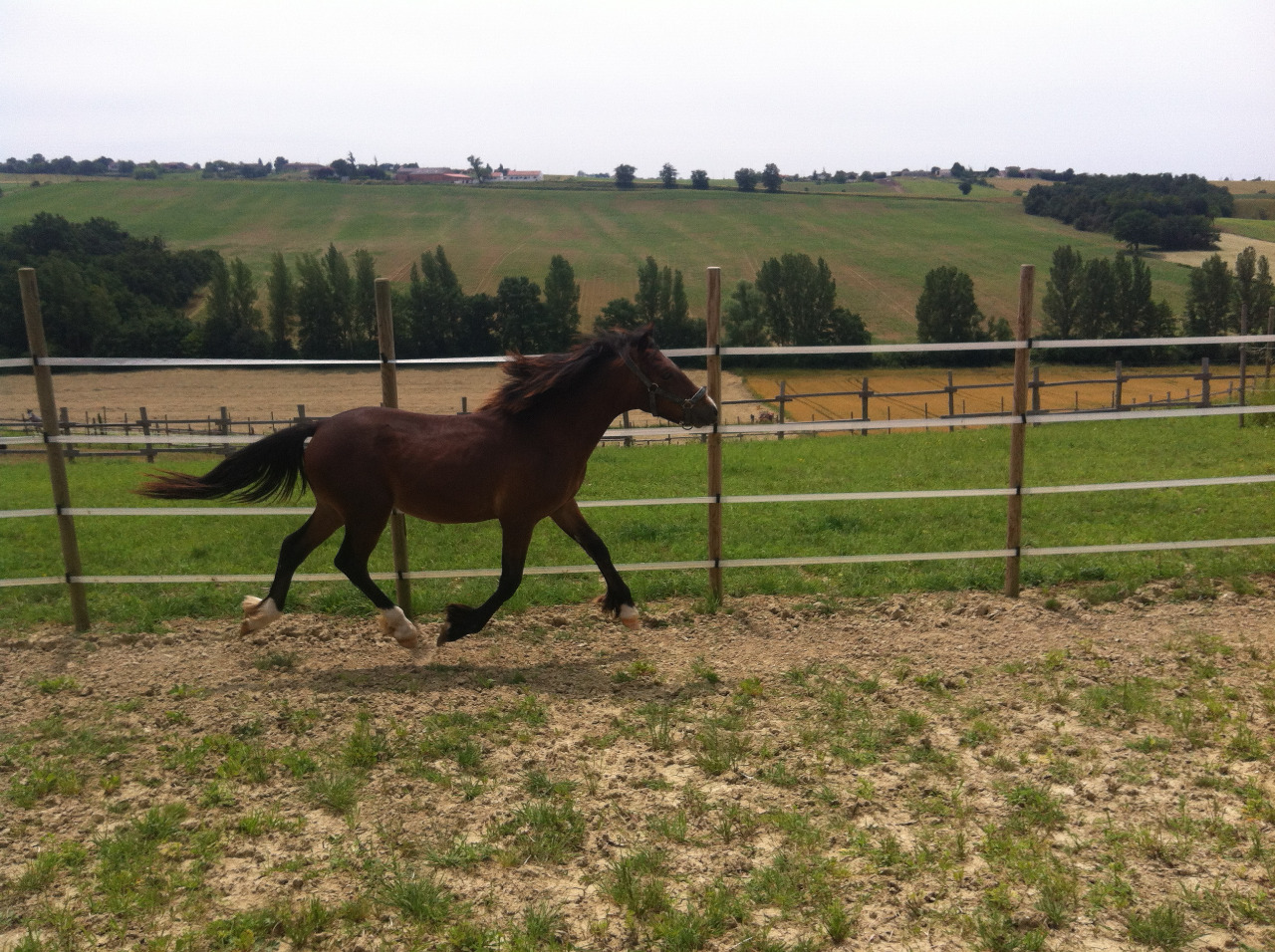 Acheté à 6 mois dans le Tarn, clin d'oeil est un poulain d'un grande gentillesse et d'une grande confiance. Calme serein et magnifiquement fait, il montre de belles allures, un bon équilibre et de bon aplombs.